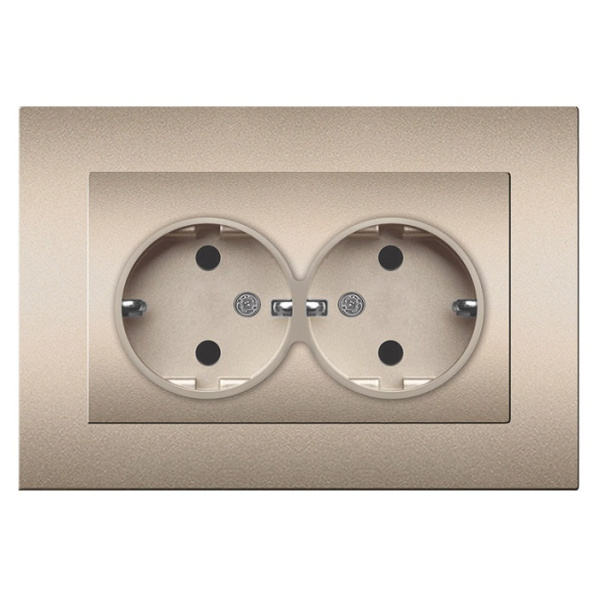 Двухместная розетка шампань серия Афина А0128-Br с заземляющими контактами, что значительно повышает уровень электробезопасности данного изделия.
