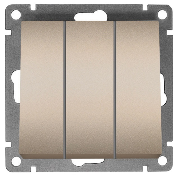 Выключатель 3-клавишный 10А Шампань А0043-Br имеет современный дизайн, идеально дополнит и подчеркнет любой интерьер жилой комнаты или офисного помещения.