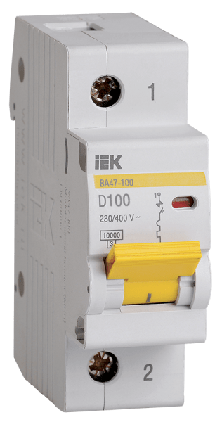 Автоматические выключатели ВА47-100 предназначены для защиты распределительных и групповых цепей, имеющих активную и индуктивную нагрузки. Рекомендуются к применению во вводно-распределительных устройствах бытовых и промышленных электроустановок. Два типа защиты от перегрузки и короткого замыкания. Независимый индикатор положения контактов. Увеличенная коммутационная способность 10000А позволяет устанавливать ВА47-100 в качестве вводных автоматических выключателей. Защёлка на DIN-рейку с двойным фиксированным положением. Насечки на контактных зажимах снижают тепловые потери и увеличивают механическую устойчивость соединения.