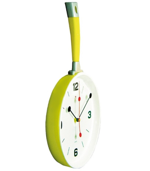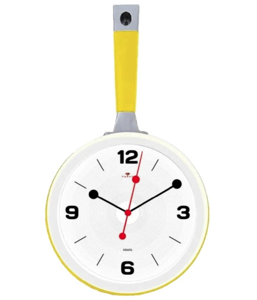 Часы настенные сковорода 2543-001 корпус желтый с белым, с плавным ходом, пластмасса, металл.