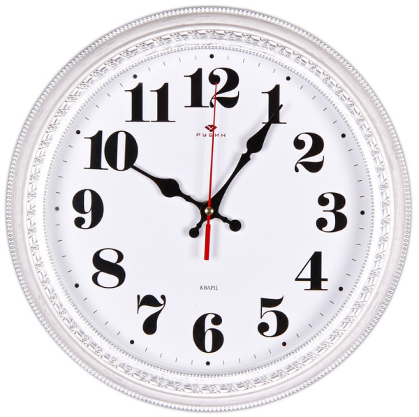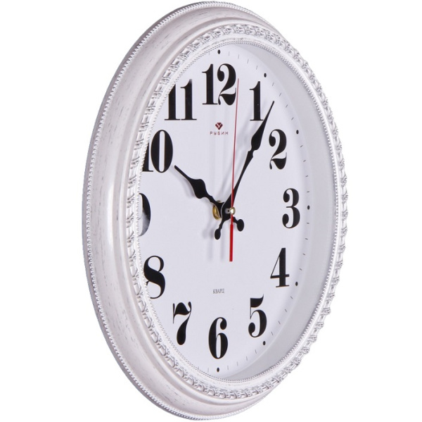 Настенные часы 2950-003 с круглым корпусом белого цвета. Механизм плавного хода. Питание от батарейки типа АА х 1 шт.