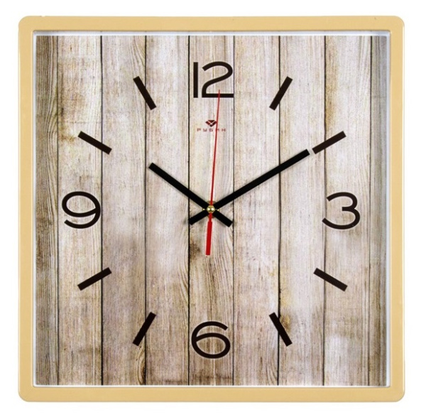 Настенные часы 3028-123 оснащены качественным кварцевым механизмом, который гарантирует длительный эксплуатационный период изделия. На квадратной рабочей поверхности аксессуара находится секундная и минутная стрелки, а также крупные цифры для отображения точного времени.