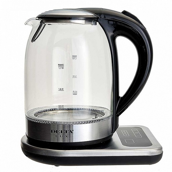 Чайник электрический 2200 Вт, 1,7 л DELTA LUX DE-1002 черный, функция установки температур с LED-индикацией разными цветами, поддержание температуры.