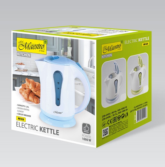 Электрический чайник Maestro MR-028 с дисковым нагревателем имеет современный эргономичный дизайн, выполнен из высококачественного термостойкого пластика. Преимуществом электрического чайника на дисковой основе является более удобная его очистка от накипи.