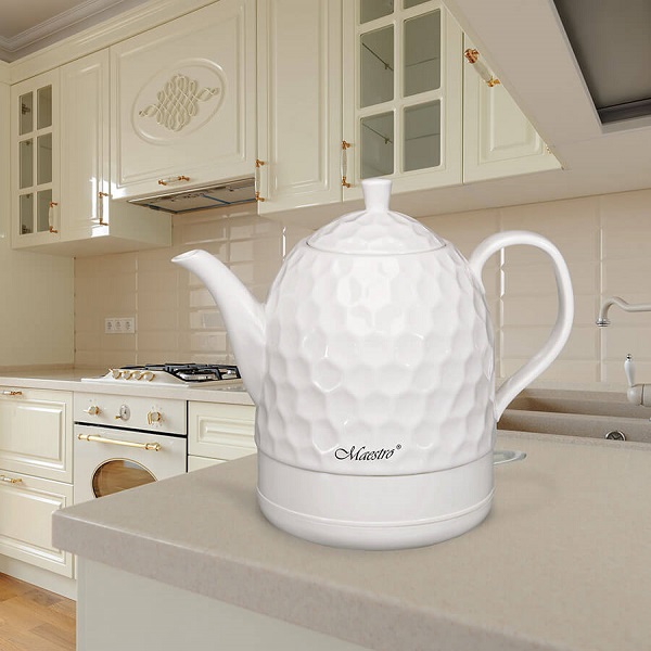 Электрический чайник Maestro на 1.2л. MR-072 станет отличным приобретение для вашей кухни. Такой чайник сделан из жаропрочной керамики. Объём чайника составляет 1.2 литра. Скрытый нагреватель воды сделан из нержавеющей стали. Такой чайник имеет современный и эргономичный дизайн. Специальная защита от перегрева отключит его, как только вода вскипит.
