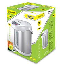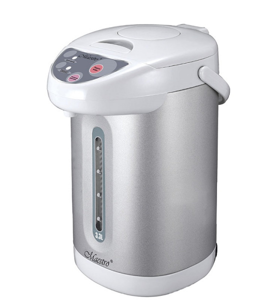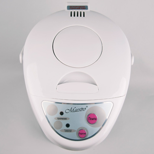 Электрочайник- термос MR-084 4,5л включает в себя функции термоса и электрочайника. Он не только вскипятит воду, но и сохранит её горячей в течении долгого времени. Корпус выполнен из высококачественной нержавеющей стали. Металл прочный, не выделяет опасных примесей, не влияет на цвет и вкус и не вызывает аллергической реакции в организме. Устройство мощностью в 750 Вт оснащено функцией повторного кипячения, режимом поддержания нужной температуры, индикатором уровня воды и защитой от перегрева. Имеется три способа подачи жидкости: электрическая помпа, воздушная помпа, а так же датчик прикосновения на носике.