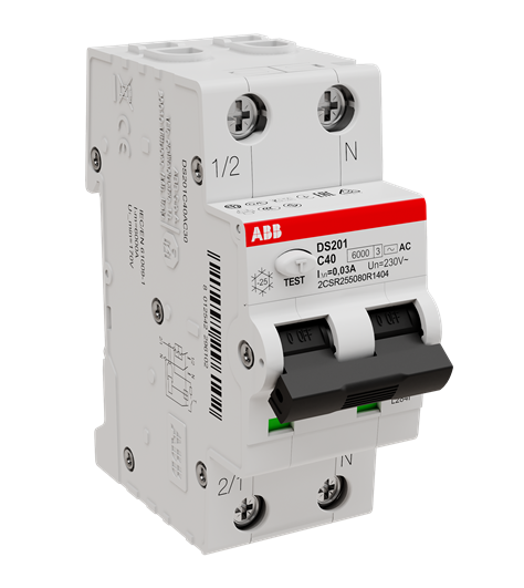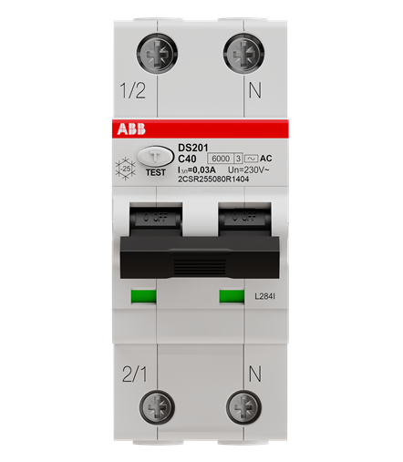 Дифференциальный автоматический выключатель DS201 C40 AC30 (2CSR255080R1404) предназначен для применения в промышленных и бытовых сетях и обладает отключающей способностью 6000А (6кА). Данный аппарат рассчитан на номинальный ток 40А, его электромагнитный расцепитель настроен на характеристику срабатывания «C», означающую защиту от синусоидальных переменных токов утечки от короткого замыкания. Порог отключения расцепителя дифференциального тока настроен на 0,03А (30мА), что дает надежную защиту человека от поражения электрическим током.
