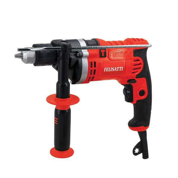 Ударная дрель Felisatti ДУ-13/750ЭР(М) 421.5.1.00 снабжена металлическим ключевым патроном, что гарантирует надежную фиксацию оснастки. Есть функция удара, которая позволяет точно и быстро просверлить отверстие в бетонной или кирпичной стене. Дополнительная рукоять дает возможность крепко держать инструмент в ходе эксплуатации. На конце рукоятки имеется выступ, благодаря которому рука не соскальзывает во время работы.