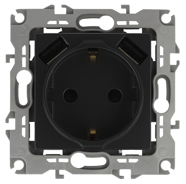 Розетка 2P+E 16A-250В, штор. с 2xUSB 5В-3А, антрацит 12-4109-05 Эра12