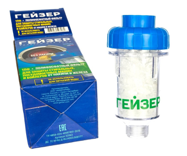 Фильтр против накипи 1ПФ 32063 предназначен для защиты от образования накипи на нагревательных элементах стиральных машин и бойлеров. Данный фильтр подходит для очищения горячей и холодной воды. Фильтр обеспечивает экономию электроэнергии, стильных средств, а также увеличивает срок службы бытовых приборов.