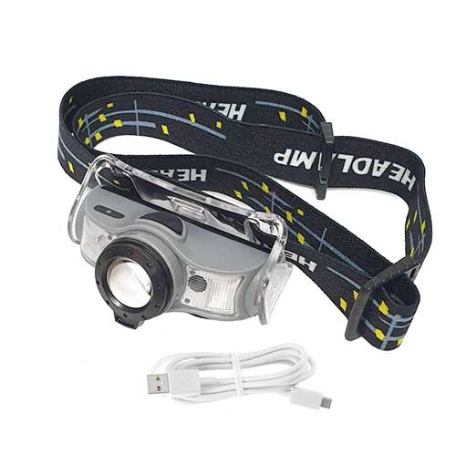 Налобный фонарь с функцией сенсорного выключателя имеет мощный светодиод, линзу и ZOOM, также фонарь имеет 2LED-светодиода (красных по бокам). Основные режимы выбираются одной кнопкой управления: 1-яркий белый; 2- слабый белый; 3-красный(по бокам горят 2 светодиода); 4-красный прерывистый(стробоскоп); 5-выключено. При активации сенсора, фонарем управляют путем простого взмаха руки перед сенсором фонаря: включение, выключение света. Сенсор активируется после удержания кнопки 4 секунды, загорается зеленый светодиод – индикатор. Режим сенсора работает только на белый свет: вкл./выкл. при взмахе руки.