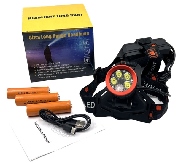 фонарь налобный MT-8044, 3-аккумулятора Li-ion 18650, кабель для зарядки USB – Type-C