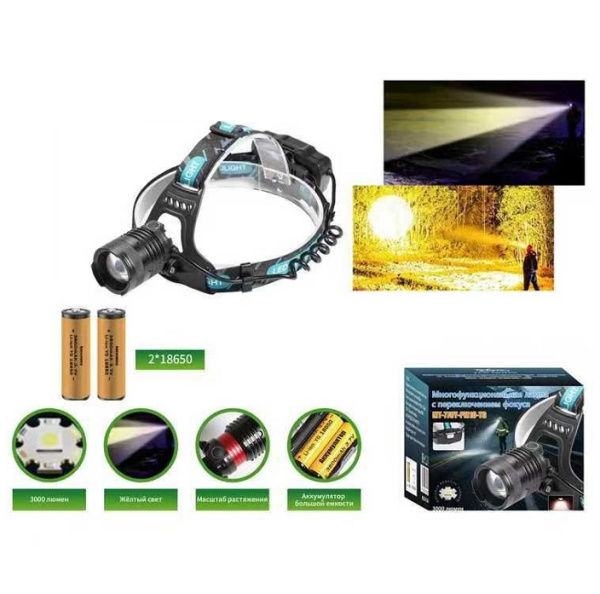 Фонарь налобный аккумуляторный теплый свет MT-778Y-PM10-TG Огонь