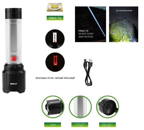 Фонарь ручной аккумуляторный H-3145-PM60-TG Огонь