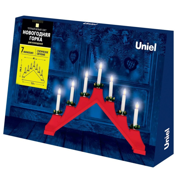 Фигура Новогодняя горка UDL-L7101-007-SWA-WW RED BRIDGE 39.5х30.5см 7 миниламп накаливания теплый белый свет, корпус красный TM Uniel