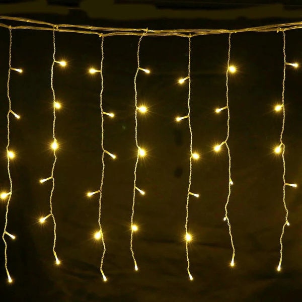 Гирлянда шторы теплый с питанием от сети 1,5х1,5м прозрачный шнур
