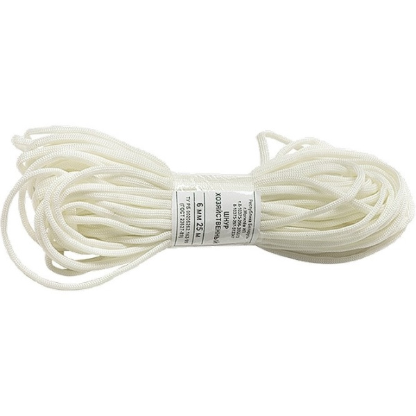 Шнур хозяйственный изготовлен из полиэфирных материалов. Выдерживает большие нагрузки.