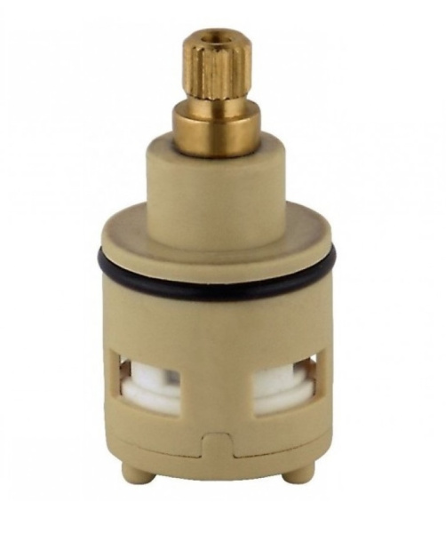 Керамический картридж F54-2 переключатель для душа. Простой механизм оборудован латунными штоками со шлицами, чем проще конструкция тем дольше срок эксплуатации. На картридже есть направляющие, чтобы его можно было правильно установить. Подходит для использования с горячей водой не более 90 градусов Цельсия.