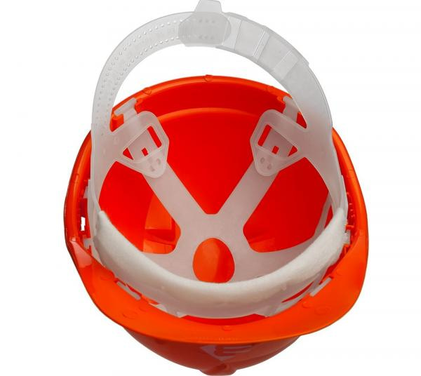 Оранжевая защитная каска 11090_z01 служит для защиты головной части рабочего от ударов при падении тяжелых предметов, от электрического тока, а также брызг агрессивных химических жидкостей и воды. Изделие широко применяется для ношения на строительных площадках, монтажных и слесарных производственных предприятиях. Каска имеет текстильное оголовье с налобной вставкой, впитывающей пот, и вентиляционные отверстия. Регулировка изделия по размеру головы может варьироваться от 52 до 62 см.