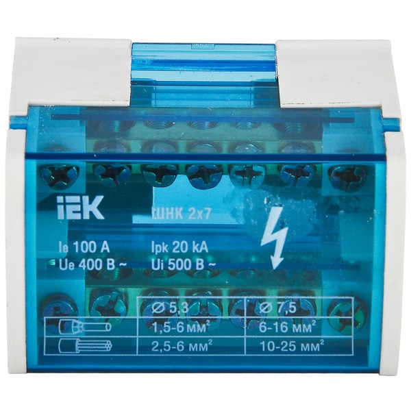 Шина земля-ноль на DIN-рейку в корп. 2х7 групп 100А (Кросс-модуль). Шины выполнены из высококачественной латуни, изолирующая задняя панель и прозрачная защитная крышка выполнены из самозатухающего пластика. Применяются при комплектации щитового оборудования для подсоединения нулевого провода (нулевая рабочая шина), провода заземления и фазных проводников.