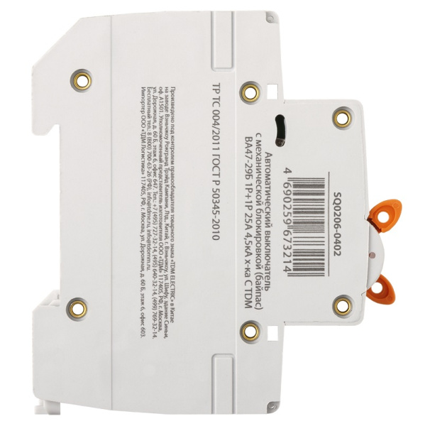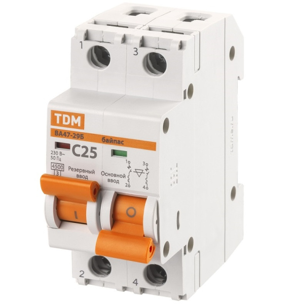 Автоматический выключатель с механической блокировкой (байпас) 1Р+1Р 25А 4,5кА х-ка C ВА47-29Б TDM