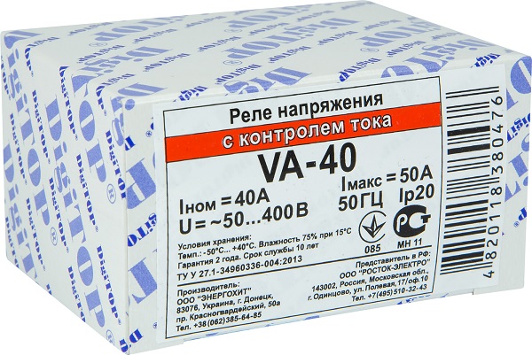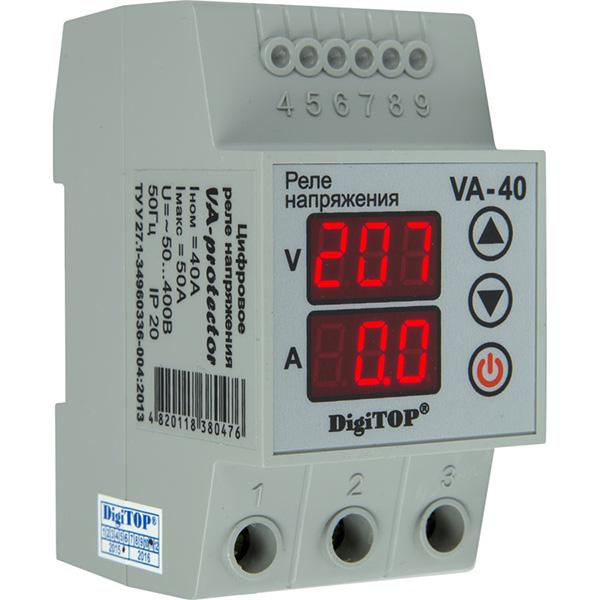 Реле напряжения VA-40A применяется для защиты бытовых приборов в квартире от аварийного скачка напряжения (как в большую, так и в меньшую сторону) и превышения потребляемой мощности свыше 8,8 кВт. Устанавливается в щиток на стандартную DIN-рейку, программируется один раз и далее обеспечивает защиту Вашей квартиры в полностью автономном режиме. Порог отключения по току = 40А. Прибор максимально надёжен и прост в эксплуатации. Реле напряжения VA-40A является полностью независимым от других приборов элементом защиты Вашего дома. Для его использования не требуется никакого дополнительного оборудования. Встроенный вольтметр и амперметр. На экране отображается действующее значение напряжения и силы тока в цепи.