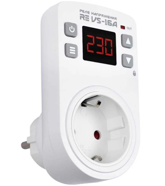 Реле напряжения нового поколения VS-16А предназначено для защиты оборудования путем автоматического отключения подключенной через него нагрузки, если значение напряжения в электросети выйдет за допустимые пределы. Реле напряжения RE VS-16А может работать как с бытовой электросетью частотой 50Гц, так и источниками напряжения с нестабильной "плавающей" частотой (генераторы и др.). Для этого в меню настроек нужно выбрать соответствующий режим работы.