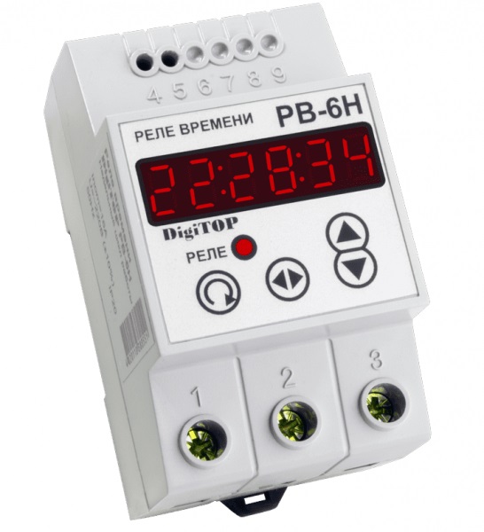 Программируемый прибор РВ-6н с недельной цикличностью и энергонезависимой памятью применяется для автоматизации подключения/отключения техники по каждодневному графику. Расширенный экран, упрощающий ввод данных, повышенную точность, стабильность работы, устойчивость к помехам за счет микроконтроллера последнего поколения, удобное цифровое управление. Сохранение настроек при отключении электричества - есть. Сохранение настроек при выключении таймера - есть. Min интервал включений – 1 минута. Max число включений - 16 в сутки.