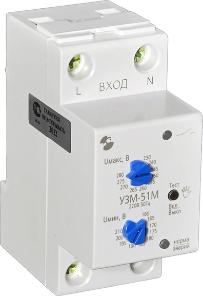 Устройство защиты УЗМ-51М УХЛ4 предназначено для отключения электрооборудования при подъемах и спадах напряжения в бытовых однофазных сетях переменного тока. Использование УЗМ позволяет предотвратить поломку техники и уменьшить риск пожара. Устройство защиты многофункциональное УЗМ-51М предназначено для: отключения оборудования при выходе значения напряжения в однофазных сетях за установленные параметры, а так же защиты оборудования от воздействия импульсных скачков напряжения, вызванных срабатыванием близкорасположенных и подключённых к этой же сети двигателей, пускателей (и т.д.), тем самым предотвращая выход оборудования из строя и его возможное возгорание.