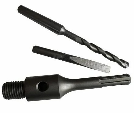 Хвостовик для алмазных коронок М16 М160105, предназначен для установки алмазных коронок по бетону с резьбой М16 на дрель. Имеет съемное центрирующее сверло для удобства разметки.