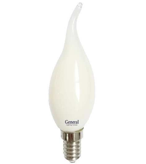 Светодиодная лампа General Свеча на ветру E14 7W(540lm) 4500K 2K 35x118 филамент (нитевидная), матова.