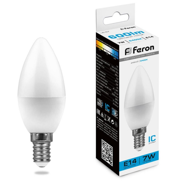 Лампа светодиодная, (7W) 230V E14 6400K, LB-97