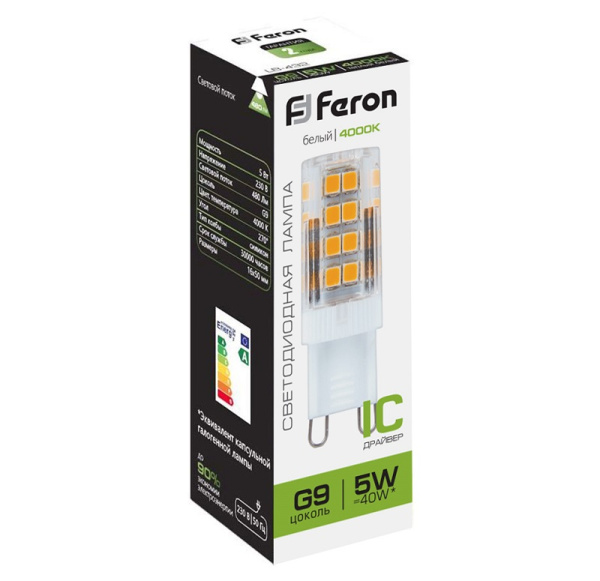 Лампа светодиодная LB-432 G9 5W 4000K 25770 Feron