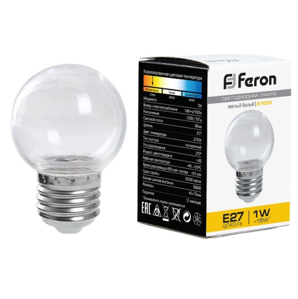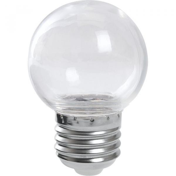 Лампа светодиодная LB-37, G45 (шар), 1W 230V E27 2700К (белый теплый), рассеиватель прозрачный белый, 80Lm, угол рассеивания 270°, 70*45мм.