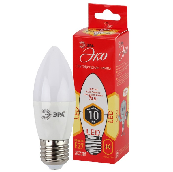 Лампочка светодиодная RED LINE ECO LED B35-10W-827-E27 E27/Е27 10Вт свеча ЭРА
