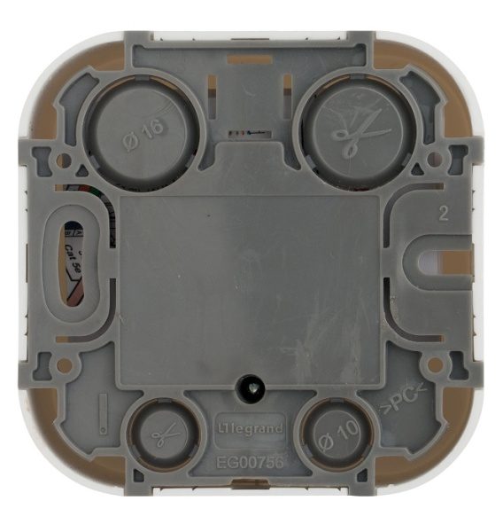Телефонная розетка RJ11 Legrand Quteo, для открытого монтажа, цвет белый. Служит для быстрого подключения к сетям телекоммуникаций, например, к телефонным сетям общего пользования. Особенности: - Современный формат накладного монтажа; - Механизм изготовлены из высококачественного поликарбоната, не проводит электрический ток, не поддерживает горение; - Простое выравнивания изделий при установке в ряд, благодаря специальной форме основания; - Корпус ударопрочный из пластичного полипропилена стойкого к внешним воздействиям; - Перфорация на корпусе для безошибочного вырезания отверстий при монтаже открытой проводки; - В основании преднарезаны 4 отверстия для подвода кабеля при монтаже скрытой проводки. Направление выхода – прямолинейная. Ударопрочность по стандарту EN 50102-IK04.
