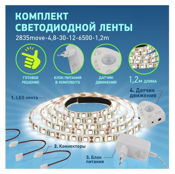 Комплект светодиодной ленты с датчиком движения 2835move-4,8-30-12-6500-1,2m .