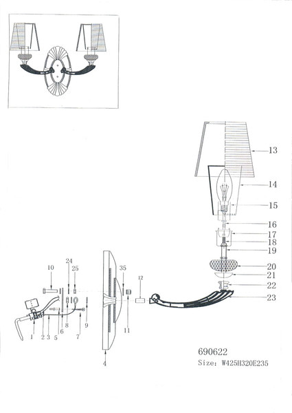 779528 (MB 300017-2) Бра ENGENUO 2х40W E14 БРОНЗА (в комплекте)