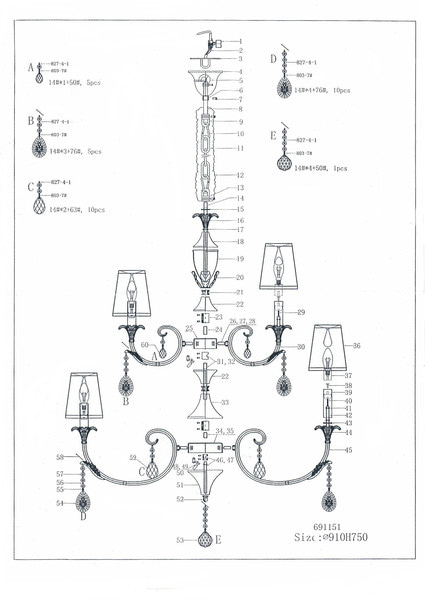 691154 (MD700001-10+5) Люстра подв CAPPA 15x40W E14 ХРОМ (в комплекте)