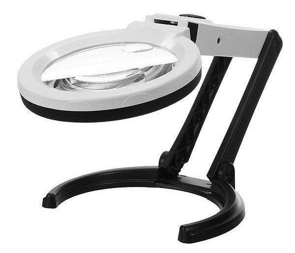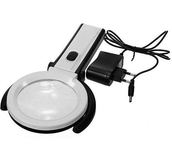 Лупа настольная складная с подсветкой 2x/5x-120мм 10 LED MG3B-1C на штативе-трансформере с мощной светодиодной подсветкой (10 LED). Большая линза - диаметр 120мм, увеличение – 2х-кратное. Маленькая линза - диаметр - 28мм, увеличение – 5х-кратное. Удобно складывается. Не занимает много места. 10 ярких светодиодов имеют мягкую яркость и облегчают визуальную усталость. Батарейный отсек находится в нижней части корпуса.