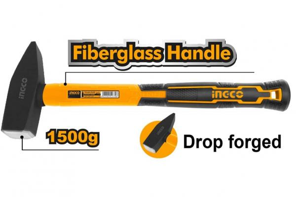 Слесарный молоток с фибергласовой ручкой является простым и незаменимым ручным инструментом, который применяется для забивания гвоздей. Состоит из стального бойка комбинированной формы и фибергласовой рукоятки. Боек прошел процесс закалки, для увеличения твердости. Благодаря фибергласу рукоять поглащает вибрацию при ударе. Вес бойка: 1500 гр.