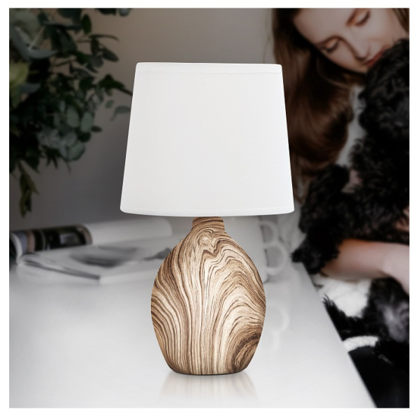 Настольная лампа 1 * Е14 40 Вт керамика светлое дерево 7072-503 – уютный и очень красивый дизайнерский светильник от итальянского бренда. Основание настольной лампы изготовлено из керамики тёплого цвета светлое дерево. Абажур выполнен из специальной ткани с повышенной прочностью и защитой от накопления пыли. Белый абажур классической формы отлично рассеивает свет и создаёт в комнате благоприятную для отдыха атмосферу.