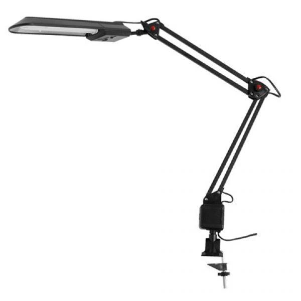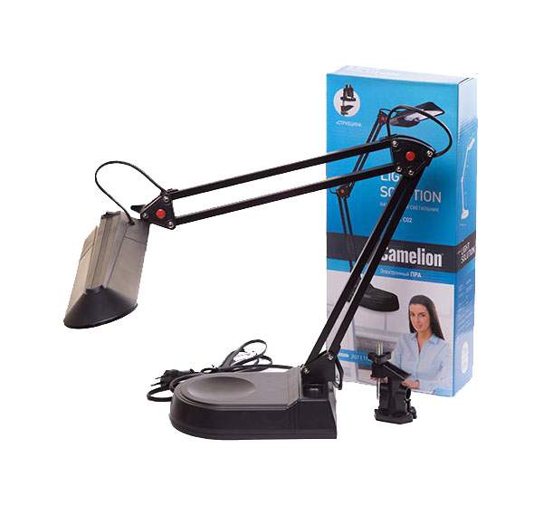 Настольный светильник, черный Camelion, KD-017C, 3281 используется для освещения письменного или рабочего стола в офисе или дома. Корпус изготовлен из металла и пластика. Этот осветительный прибор оснащен струбциной для крепления к столу, полке или подоконнику. Двухколенная конструкция корпуса позволяет регулировать высоту и положение плафона. Цоколь 2G7 используется с энергосберегающей лампой типа LH11-U, которая идет в комплекте со светильником.