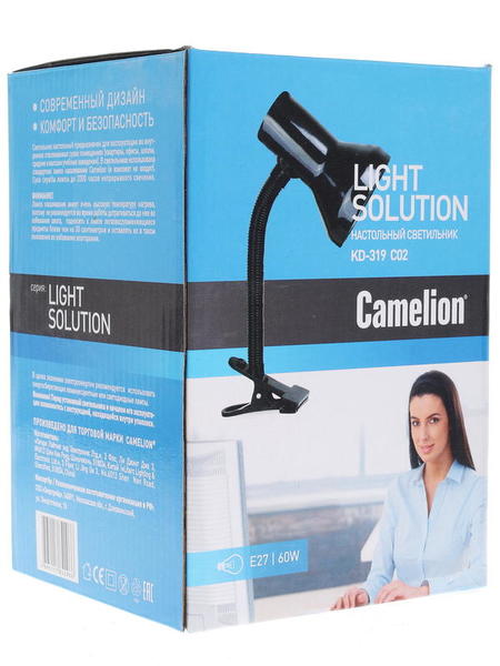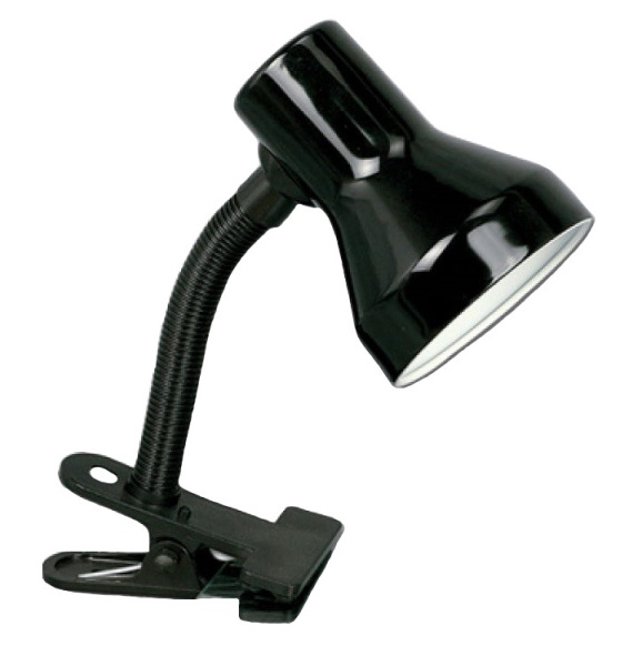 Настольный светильник-прищепка, черный Camelion KD-319, 5762 предназначен для освещения рабочего места в офисе или дома. Изготовлен из металла и ударопрочного пластика. Обладает гибкой конструкцией корпуса для регулировки высоты и положения плафона. На основании расположена прищепка, которая позволяет крепить светильник к столу или полке. Цоколь Е27 применяется с лампами накаливания, со светодиодными или с энергосберегающими лампами.Длина шнура 1,6 м. Размеры, мм: 115х175х175.