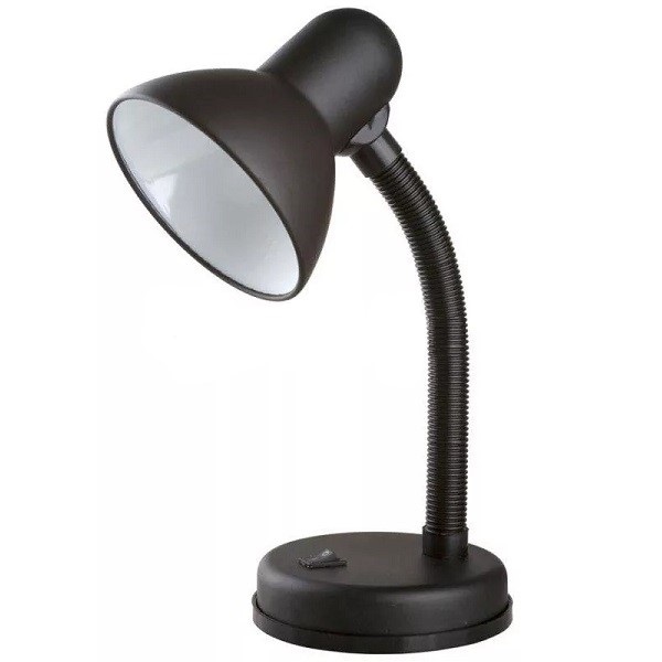Светильник настольный универсальная модель, предназначенная для освещения рабочего места , места чтения, учёбы. Может использоваться дома и в офисных интерьерах. Изготовлен из металла. Гибкая стойка в гофрированной пластиковой оболочке позволяет регулировать наклон плафона. Можно использовать с любыми типами ламп, в том числе со светодиодными. С выключателем на основании.