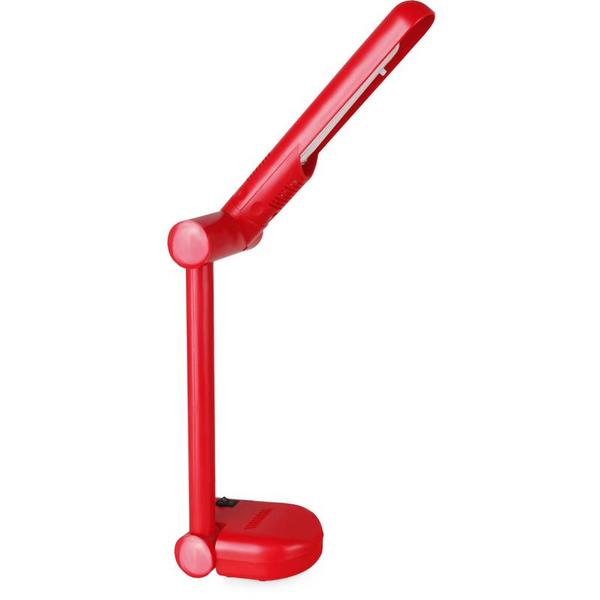 Настольный светильник, красный Camelion, KD-001, 3751 изготовлен из термостойкого пластика красного цвета. Складная конструкция корпуса позволяет компактно размещать или без труда перемещать светильник. Цоколь G23 используется с энергосберегающей лампой LH9-U, которая светит мягким светом (входит в комплект). Оснащен выключателем, расположенным на подставке.