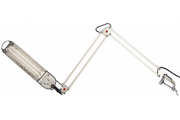 Настольный светильник на струбцине серебро Camelion KD-008С используется для дополнительного освещения или как основной источник света в офисе или дома. Корпус изготовлен из металла и пластика. Двухколенная конструкция позволяет регулировать положение светильника и менять наклон плафона, чтобы направлять свет под необходимым углом. Оснащен струбциной для крепления к столу. Светильник предназначен для использования с энергосберегающей лампой, цоколем 2G7.