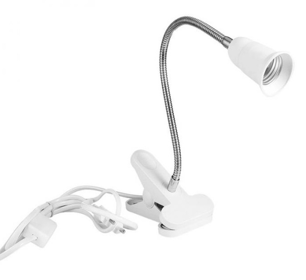 Настольная лампа на прищепке с патроном на гибкой подводке - предназначен для организации дополнительной подсветки цветов, рассады. Гибкая стойка позволяет менять высоту и направление лампы. Можно направлять свет в том направлении, которое необходимо. На одном конце удлинителя расположена специальная прищепка, с помощью которой, можно закрепить за подоконник, полку, дверь, ручку и т.д. Светильник предназначен для использования фитолампы с патроном E27. Гибкая подводка 30см позволяет наклонить патрон для освещения необходимого пространства или предметов под удобным изгибом.
