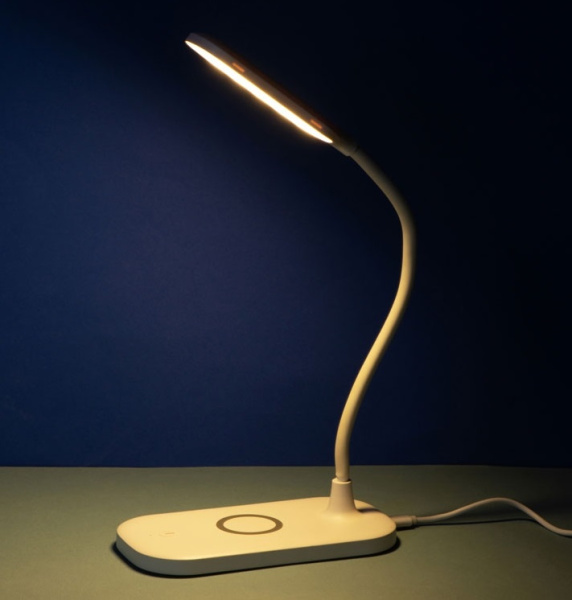 Настольный светильник может менять угол освещения любым удобным вам образом — гибкая ножка позволяет вертеть его во все стороны. Три режима освещения — нейтральный, теплый и холодный — меняются совершенно бесшумно при помощи сенсорной кнопки, которая расположена в подставке. Еще один плюс это функция беспроводной зарядки Qi-совместимых устройств: просто поместите ваш смартфон на подставку, и он начнет заряжаться.
