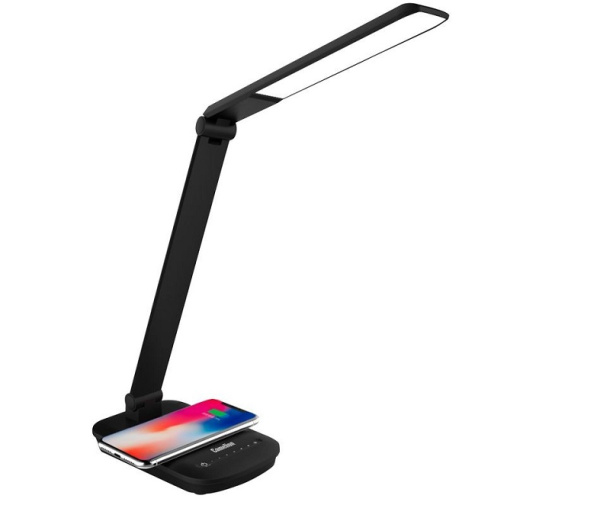 Светильник настольный Camelion KD-825 С02 идеален для рабочего стола. Не занимает много места, дает достаточно света для работы и учебы, позволят поддерживать заряд мобильного телефона. При транспортировке и хранении может быть компактно сложен. На основании расположено сенсорное управление светильником: вкл/выкл, плавное изменение яркости (пять уровней яркости). В основание светильника встроена мощная 10Вт беспроводная зарядка для мобильных телефонов. Световой индикатор работы зарядки голубого цвета показывает заряд аккумулятора мобильного телефона.